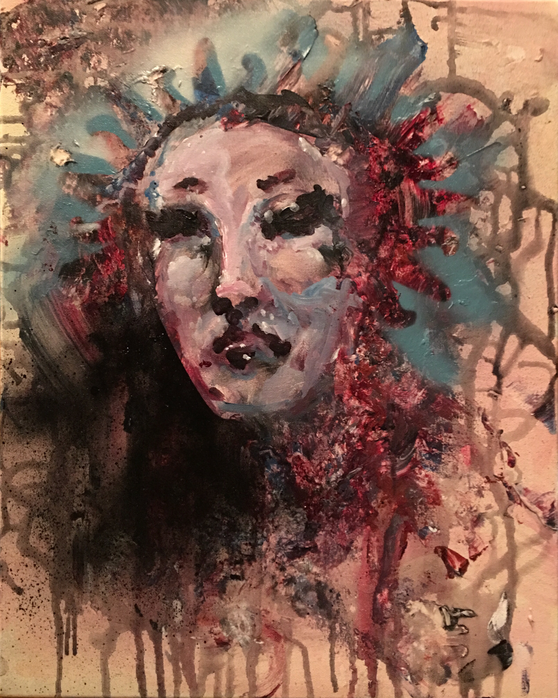 From Beth Bradley's Monday night class. Acrylics with spray paint